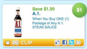 head on over there and you should spot a $1/1 ANY package A.1. Steak Sauce coupon. This is a high value coupon, so print it while you can. Let us know if you come across any in-store sales.